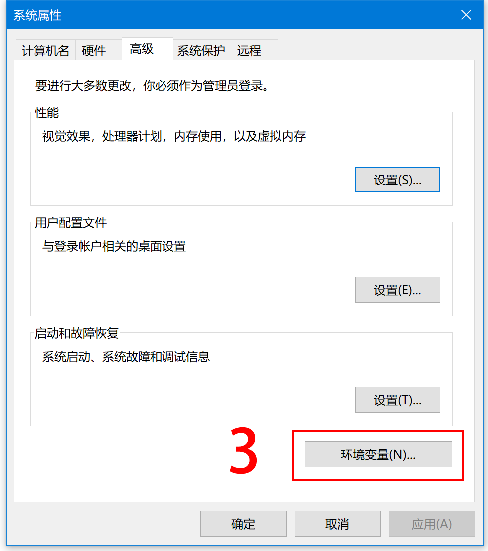 - 单击“高级”选项卡下的“环境变量”按钮