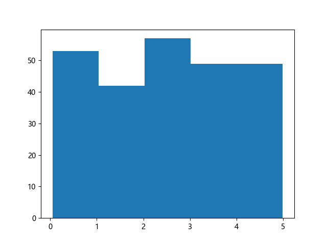 # 使我们的编译器能够绘制的三行代码: import sys import matplotlib matplotlib.use('Agg') import numpy import matplotlib.pyplot as plt x = numpy.random.uniform(0.0, 5.0, 250) plt.hist(x, 5) plt.show() # 使我们的编译器能够绘制的两行代码: plt.savefig(sys.stdout.buffer) sys.stdout.flush()